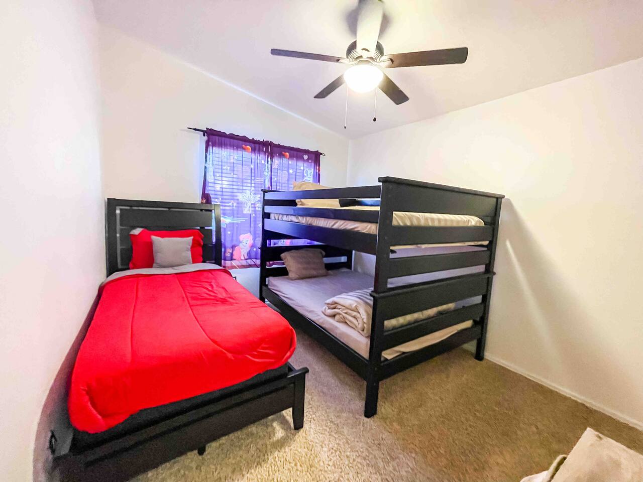 Ideal for Families, Groups, Corporate Trips and Work Crews. This home has 2 Master Suites & 4 Bathrooms. With 3 King Beds, Full/Full Bunkbed & Twin and a Queen Sleeper couch we can accommodate up to 13 people easily. 2 Car Garage and a backyard for hanging out. We have Big Screen TVS and High Speed WiFi. This house is just off Powers Blvd and Constitution in a very quiet residential neighborhood. Mins to Colo Spgs Airport & Movie Theater and all restaurants & shopping.