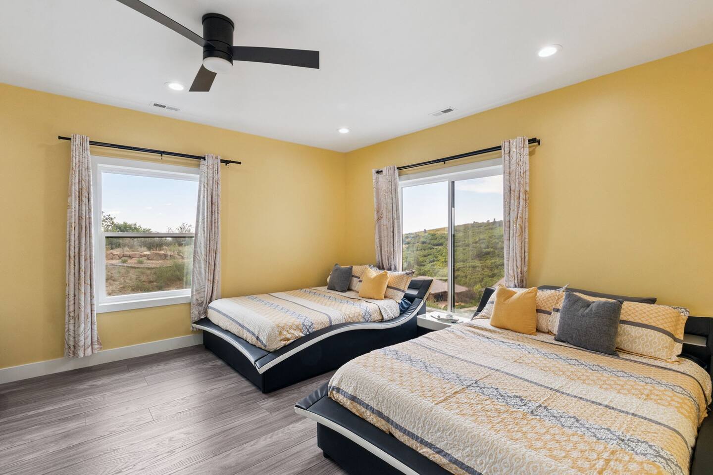 This spacious home features 6 beautifully appointed bedrooms, 5.5 spa-inspired bathrooms, and an expansive open-concept living area that’s perfect for both relaxing and entertaining. The chef’s kitchen is outfitted with high-end stainless steel appliances, granite countertops, and custom cabinetry, ideal for preparing meals after a day of adventure. Step out onto one of several private decks or patios and take in the majestic scenery—ideal for morning coffee or sunset cocktails. Inside, you'll enjoy vaulted ceilings, hardwood floors, multiple fireplaces, and a private home theater. The luxurious primary suite includes a soaking tub, walk-in shower, and direct balcony access. Nestled near Cheyenne Mountain and just minutes from the Broadmoor Resort, Cheyenne Mountain Zoo, and hiking trails like Seven Falls and Stratton Open Space, this home offers the perfect balance of tranquility and convenience. Whether you're here for a family vacation, romantic getaway, or executive retreat, this home provides a refined, peaceful backdrop for your stay. Highlights: 6 Bedrooms | 5.5 Bathrooms Sleeps up to 14 Chef’s Kitchen | Formal Dining | Outdoor Grill Private Decks & Patios with Scenic Views Home Theater & Game Room Two-Car Garage & Ample Parking Fast Wi-Fi & Smart TVs Central A/C & Heating