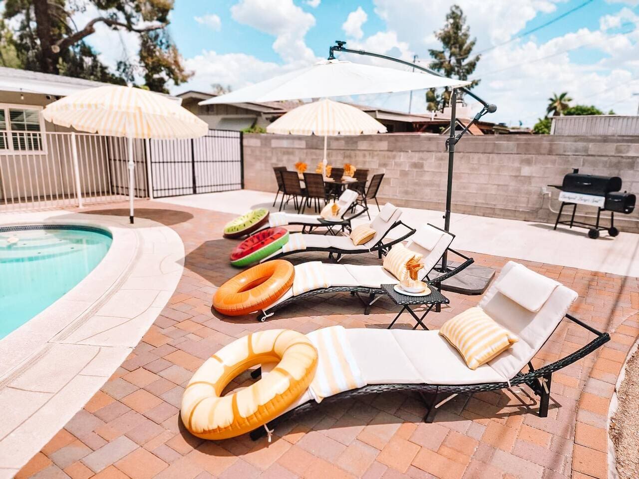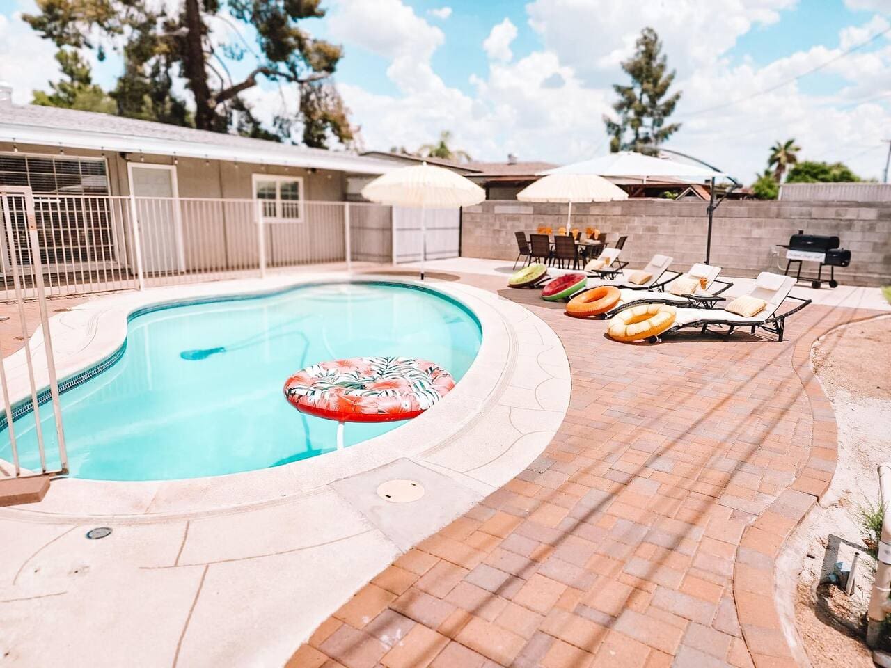 Pet/Dog Friendly Retreat. Pool can be heated for additional $40/Day Have fun with the whole family at this stylish place. Beautifully furnished house with large bedrooms, huge gourmet kitchen with breakfast bar, pool with amazing landscaping and lots of outdoor seating, BBQ Grill, Smart TVs, Lightning fast internet. Washer/dryer. Enormous master bedroom . House is fully stocked! Can be pet/dog friendly on approval basis. Its a $75 Per Pet Deposit thru Airbnb Resolution Center