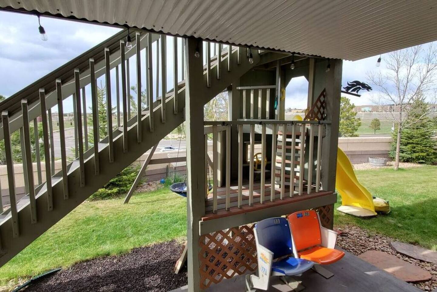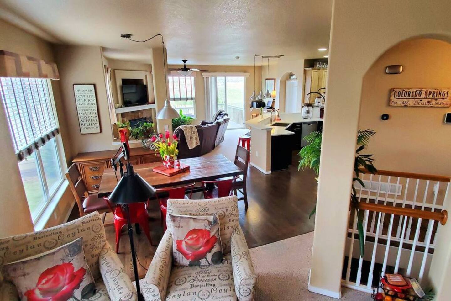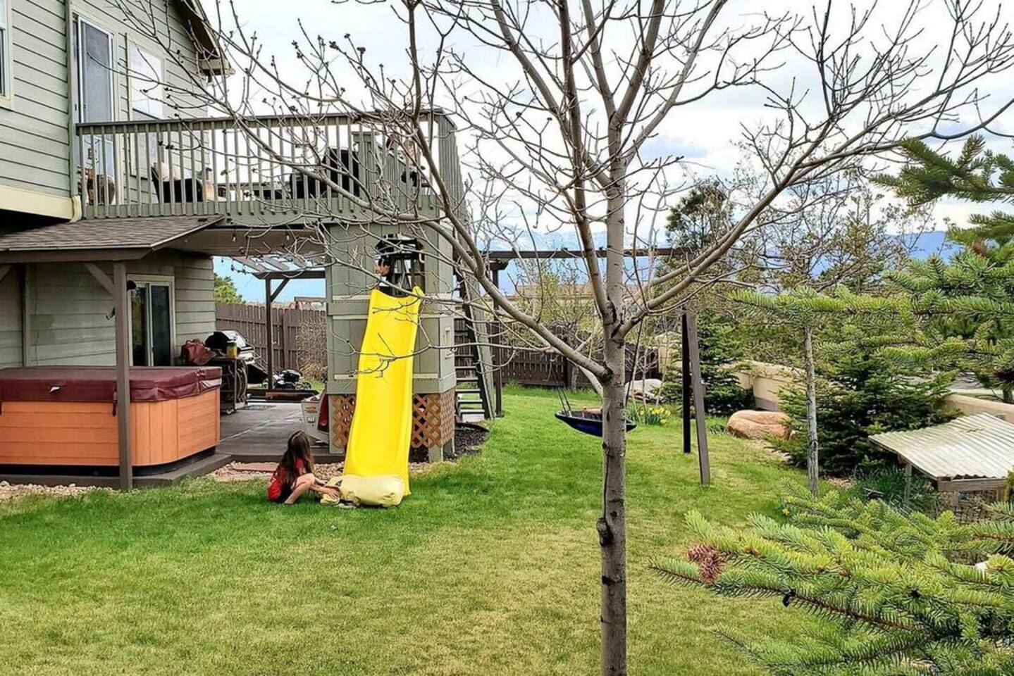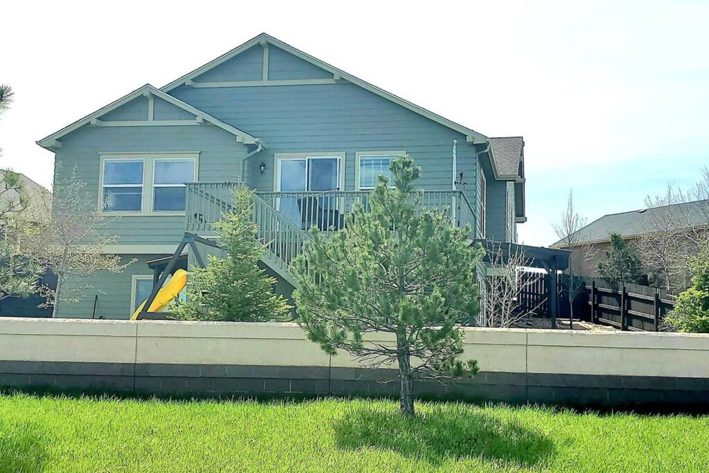 Walkout Rancher - Sleeps 13 easily with great views of America’s mountain, Pikes Peak. Outside Kids playhouse slide and swing, Deck with Amazing Mountain Views, Fenced in Yard, Gas Grill, Covered Patio, safe cul-de-sac location. With 5 TVs, fully equipped kitchen, and parks, a skate park, splash pad, all near the house, the kids will never be bored. This home is ready for your next trip to Colorado Springs.