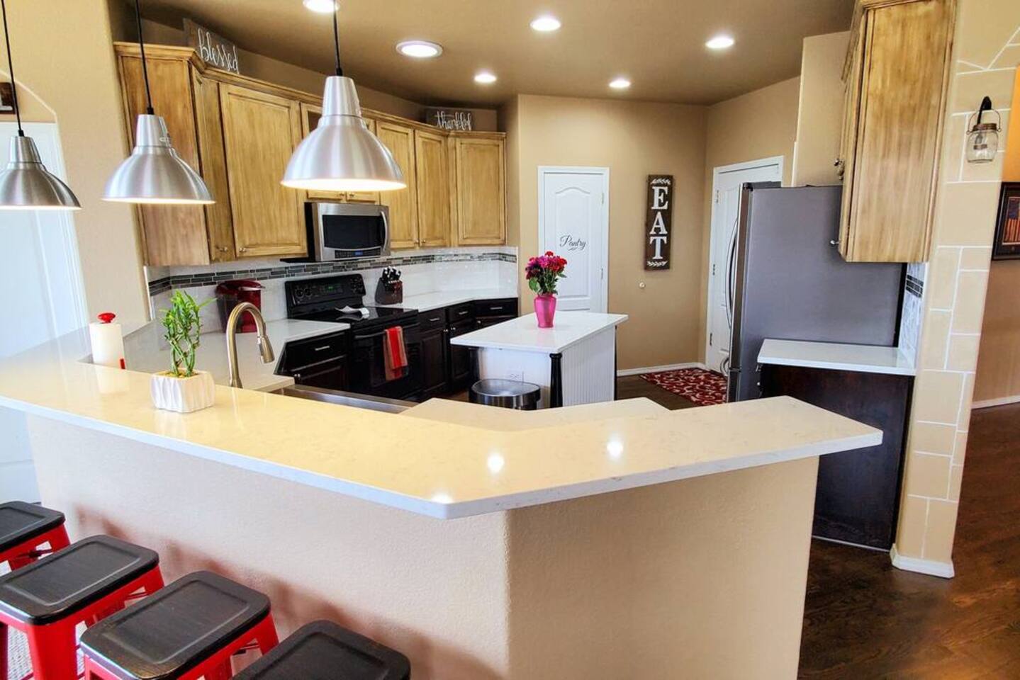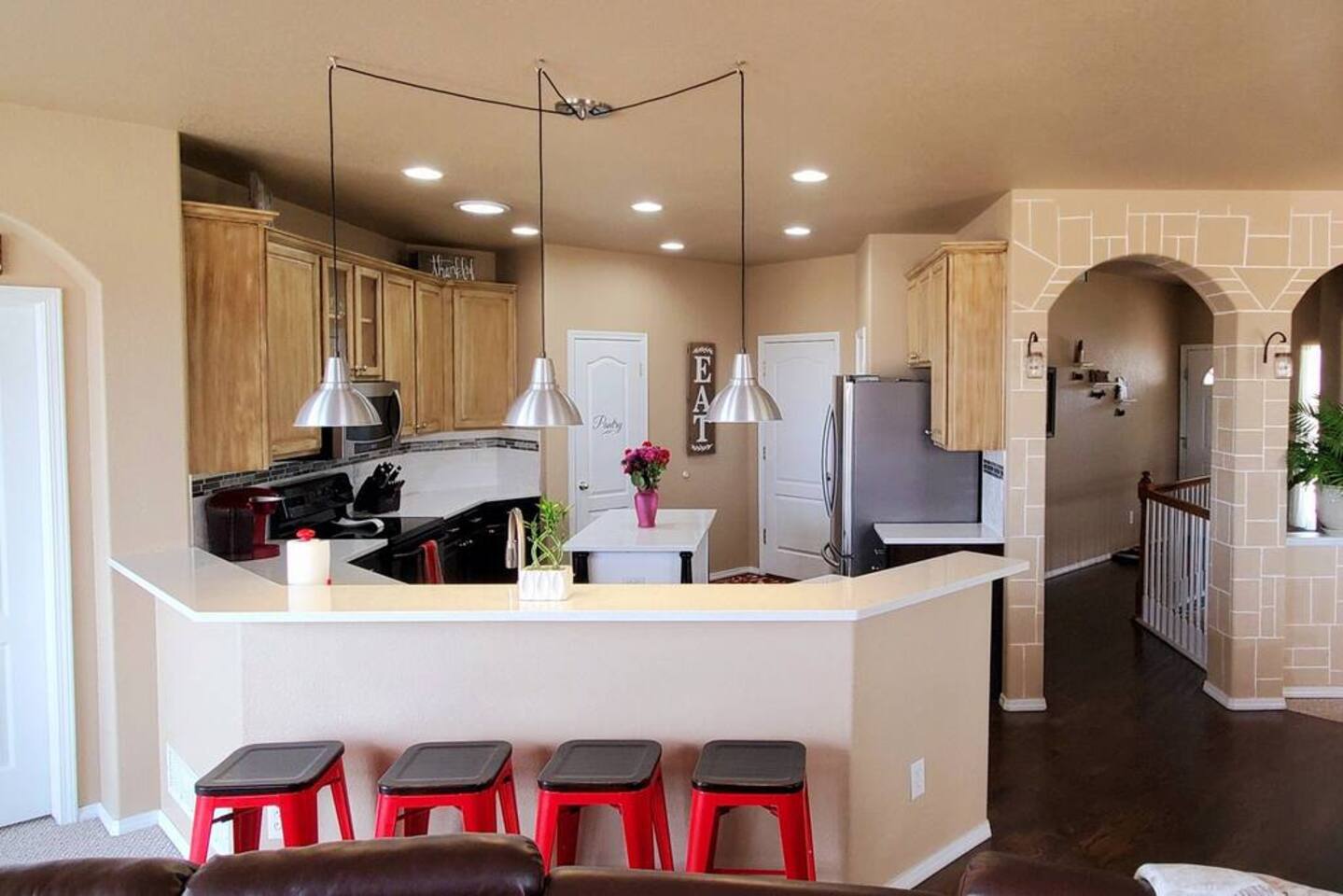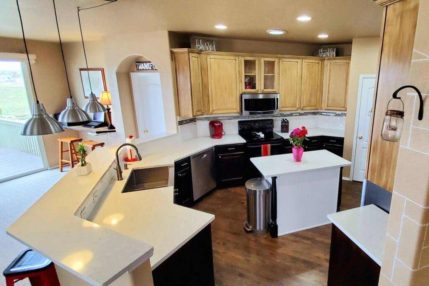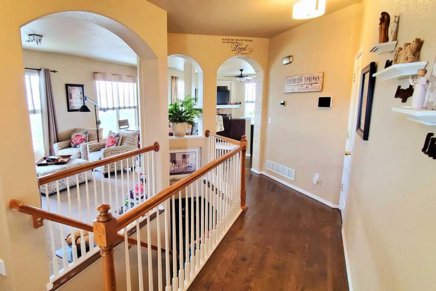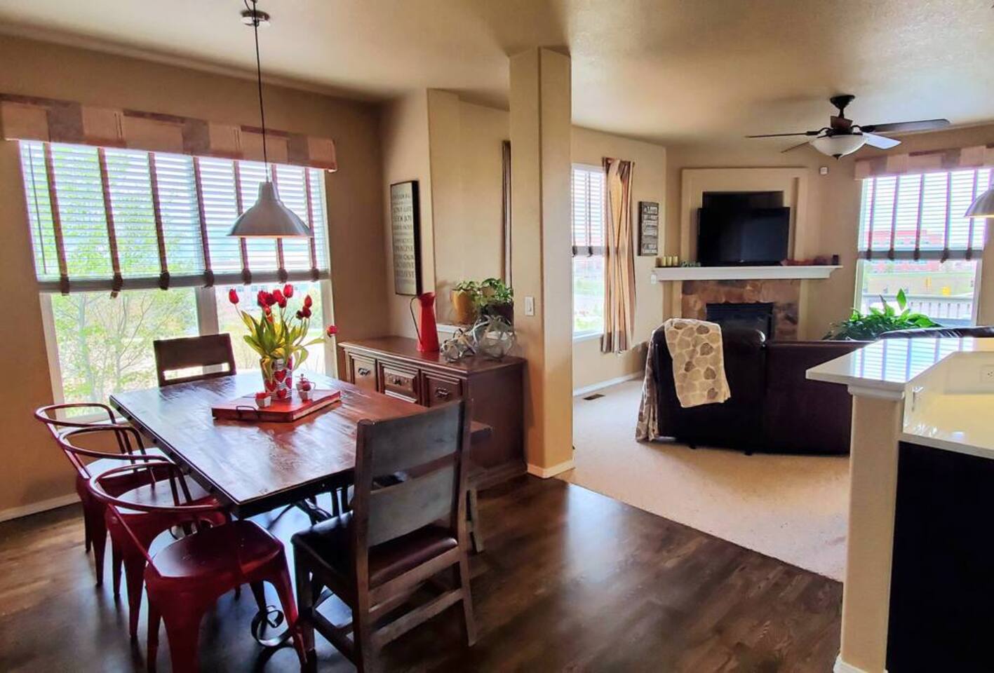 Walkout Rancher - Sleeps 13 easily with great views of America’s mountain, Pikes Peak. Outside Kids playhouse slide and swing, Deck with Amazing Mountain Views, Fenced in Yard, Gas Grill, Covered Patio, safe cul-de-sac location. With 5 TVs, fully equipped kitchen, and parks, a skate park, splash pad, all near the house, the kids will never be bored. This home is ready for your next trip to Colorado Springs.