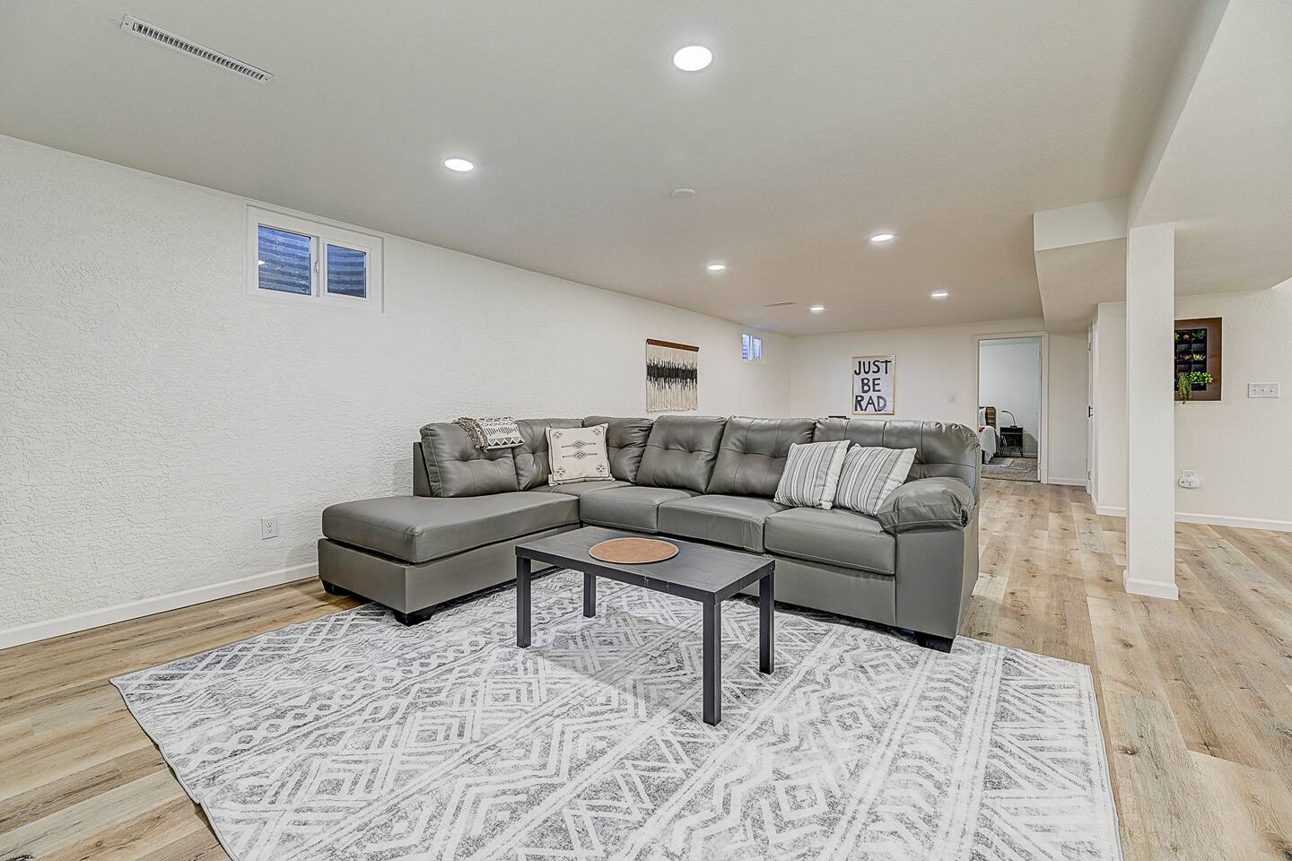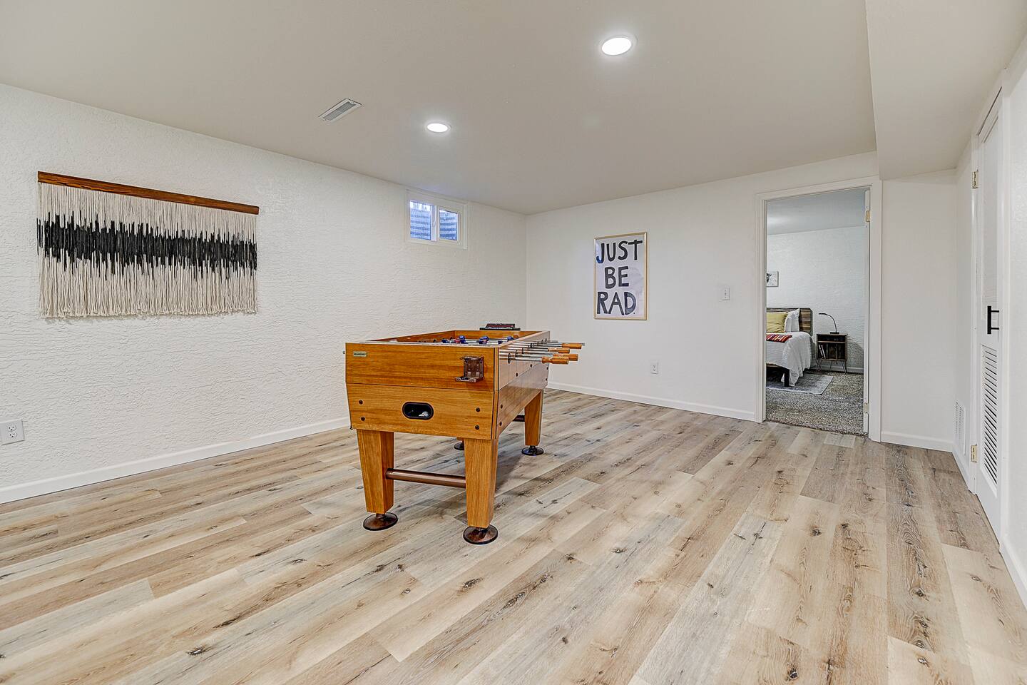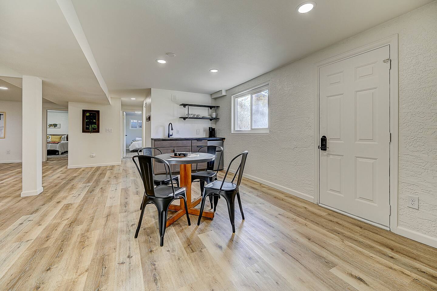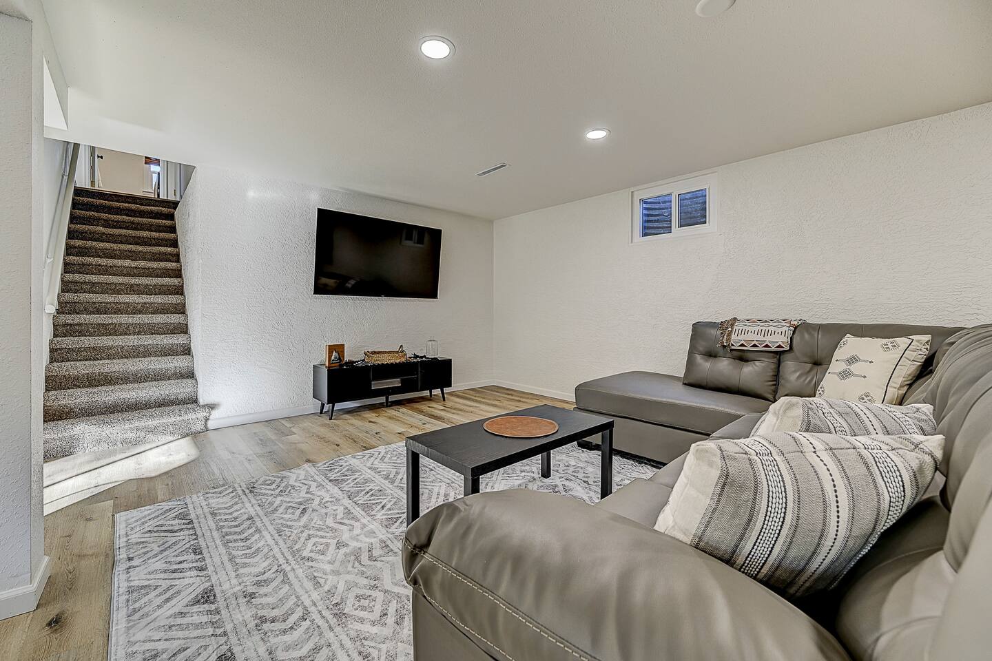 The space Discover the Magic of Palmer Pointe Heights: Your Ultimate Summer Getaway Welcome to Palmer Pointe Heights, your perfect summer retreat nestled in a serene neighborhood. This modern boho chic air-conditioned home is designed to be the ultimate family getaway, offering a blend of comfort, style, and convenience. With five spacious bedrooms and 3.5 bathrooms, the home comfortably sleeps up to 10 guests, ensuring ample space for everyone to relax and unwind. Upon arrival, you’ll find plenty of room to park, The open-concept kitchen and dining area serve as the heart of the home, perfect for gathering for meals and making lasting memories. Downstairs, the basement kitchenette and foosball table provide extra space for snacks and fun, keeping everyone entertained. The location is ideal, with all major attractions just a short drive away, making it easy to explore local parks, museums, and amusement parks. Pikes Peak is a mere 45 minutes away, Garden of the Gods is just 15 minutes away, Downtown and Historic Old Colorado Springs are only 20 minutes away, and Manitou Springs is 25 minutes away. Additionally, the United States Air Force Academy is 20 minutes away. After a day of adventure, return to your peaceful retreat and enjoy the great outdoor patio. Palmer Pointe Heights offers free WiFi, ensuring you stay connected throughout your stay. The thoughtfully curated decor, blending modern comfort with boho chic style, creates a welcoming and stylish atmosphere. Every detail has been considered to provide a seamless and memorable vacation experience. Whether you’re playing games in the basement, exploring the nearby attractions, or simply relaxing on the patio, Palmer Pointe Heights is designed to bring your family closer together. Book your stay today and start creating unforgettable summer memories. 🌞🏡🐾 Home Features: - Spacious layout with air conditioning -Grill - We do not maintain or provide anything for it - Free Wi-Fi and smart TVs - Pet/Dog-friendly - w/prior approved and Pet Fee Paid - Family Friendly - Laundry facilities - Outdoor seating with fire pit (we don't provide propane for it) - Fully stocked kitchens - Convenient parking - Nearby Attractions: Explore Pikes Peak, Garden of The Gods, and more nearby. Enjoy local breweries, sports games, and concerts. Book Now - Embrace adventure and relaxation at Palmer Pointe Heights. Book now for your next unforgettable stay! Other Notes: - Access to the entire home (excluding locked closets/doors & garage). -Dog/Pet-friendly under 50# (with prior approval & paid $75/pet fees). - No events or parties. - Please respect wildlife—property is in bear country. - Amenities may be unavailable during maintenance periods. - - Smoking allowed ONLY outside - Hosting events & parties is strictly prohibited. - Minimum age to rent is 25. Photo ID Age Verification & Rental Agreement required for all reservations. - Property does have AC/Carbon Monoxide/Smoke Alarms - Cameras on property are for security purposes & not surveillance. - Please note that this home is not wheelchair accessible. Access to the kitchen and bedrooms involves navigating 2-3 sets of stairs.