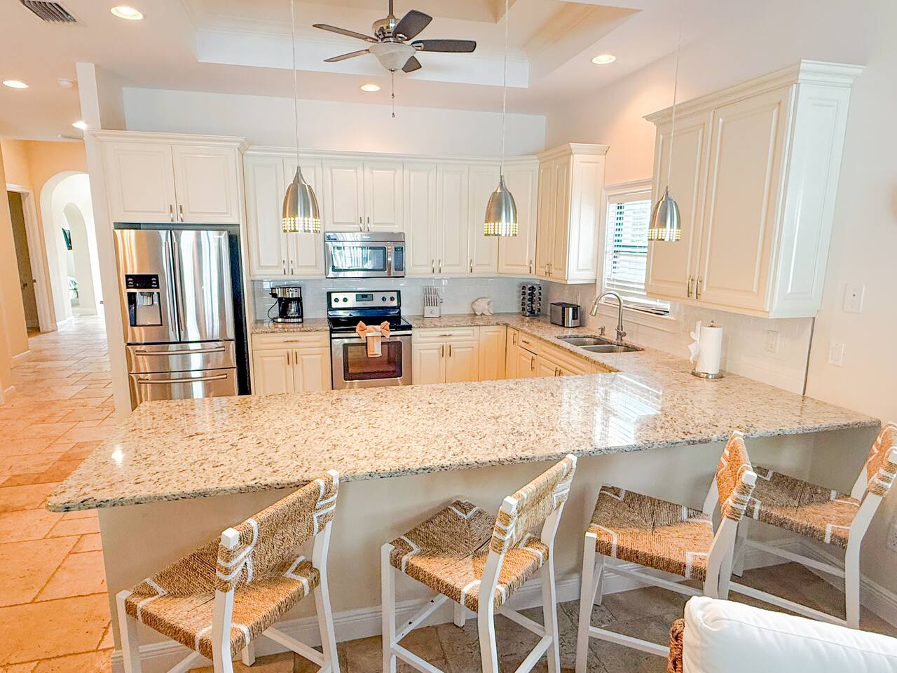 LAYOUT: 1 king bedroom w/ ensuite, full bathroom 2 Queen guest bedroom Jack and Jill full bathroom 1 Queen guest bedroom Jack and Jill full bathroom 1 guest bedroom with 2 twin beds 2 Sleeper couches Luxury kitchen Spacious open-floor plan living room with vaulted ceilings Separate Dining Area Covered patio with hang out area Laundry room with washer & dryer Pool & spa AMENITIES: Pool heat is an additional $25/night from May 1-October 31, and $40/night Nov 1-April 30 as long as heater is working. Also our Florida homes only have 1 Pool/Spa heater for both. Beach chairs Beach towels & toys Beach umbrella EXTRA INFO: Bike to Delnor Wiggins or Vanderbilt Beach 5 minutes to Mercato Shopping Center 25-30 mins from RSW airport 15-20 mins to Downtown Naples Air Conditioning Free WiFi Smart TVs We do have a Gas BBQ Grill, that we don't maintain or provide anything for it. Please keep it away from the house, pool and outside TV so no damage is incurred. Walmart at 112 Tamiami Trail N, Naples FL 34110 is less than a mile away and they refill and sell propane tanks.