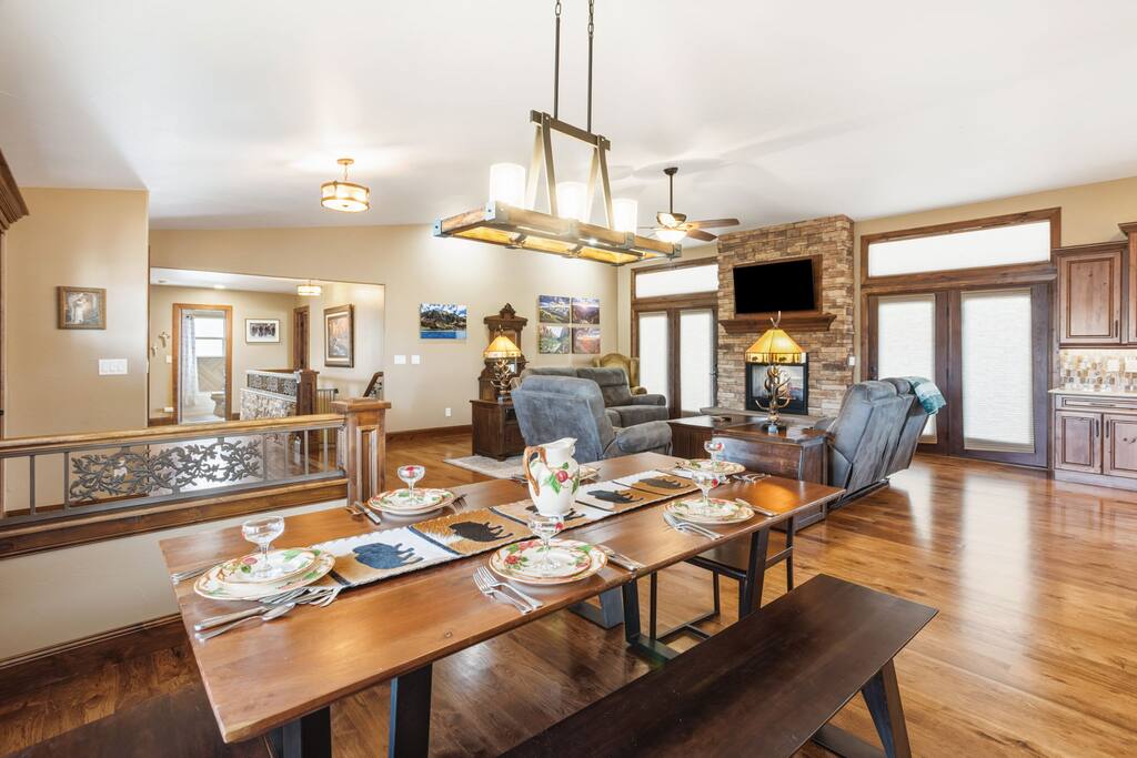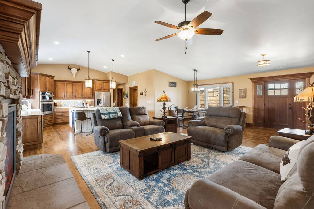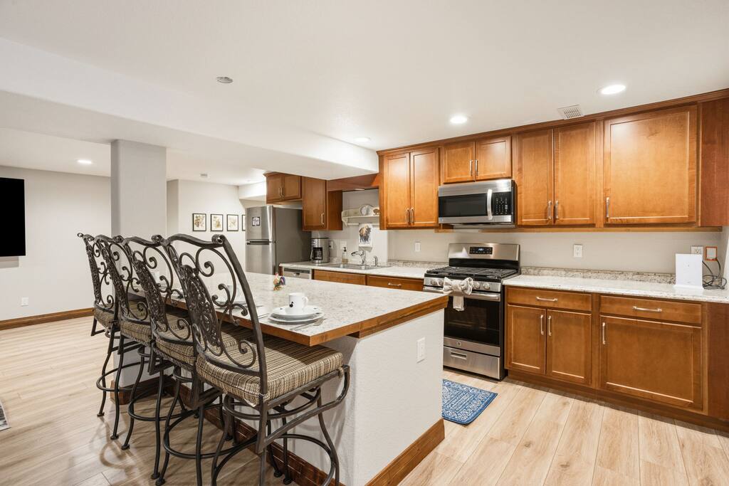 • 5 Bedrooms + 4 Full Baths – Sleeps 12. Thoughtfully designed to sleep your group comfortably • Open-Concept Living • Two Fully Equipped Kitchen – Stainless steel appliances, generous counter space, and everything you need to cook at home • Cozy Bedrooms – Plush bedding and peaceful ambiance for restful nights • Private Backyard – Great for relaxing outdoors and enjoying Colorado’s sunshine • Two Living Areas – Room to spread out, work, play, or unwind • Attached Garage + Driveway Parking