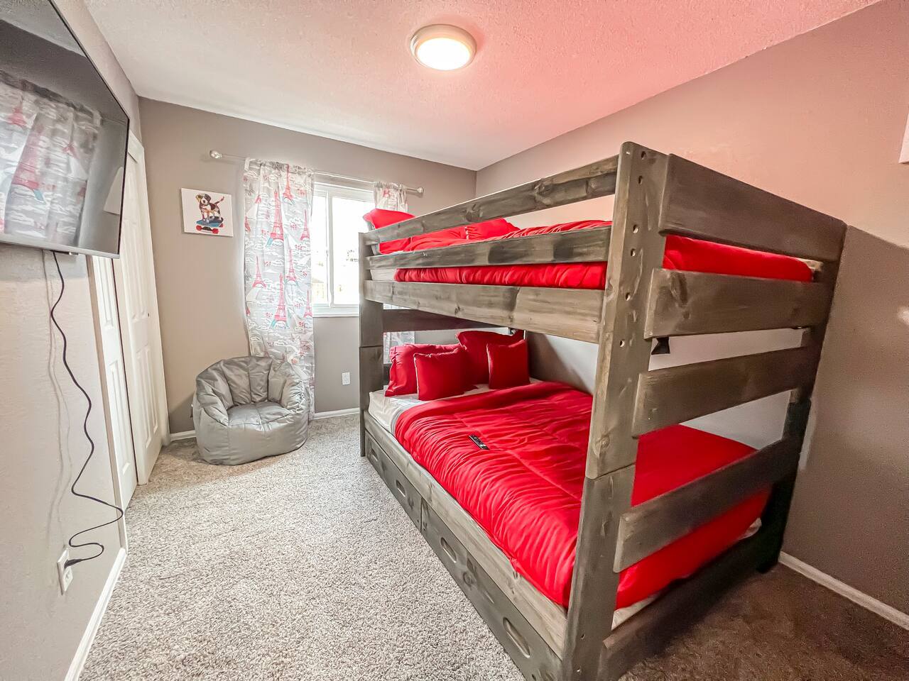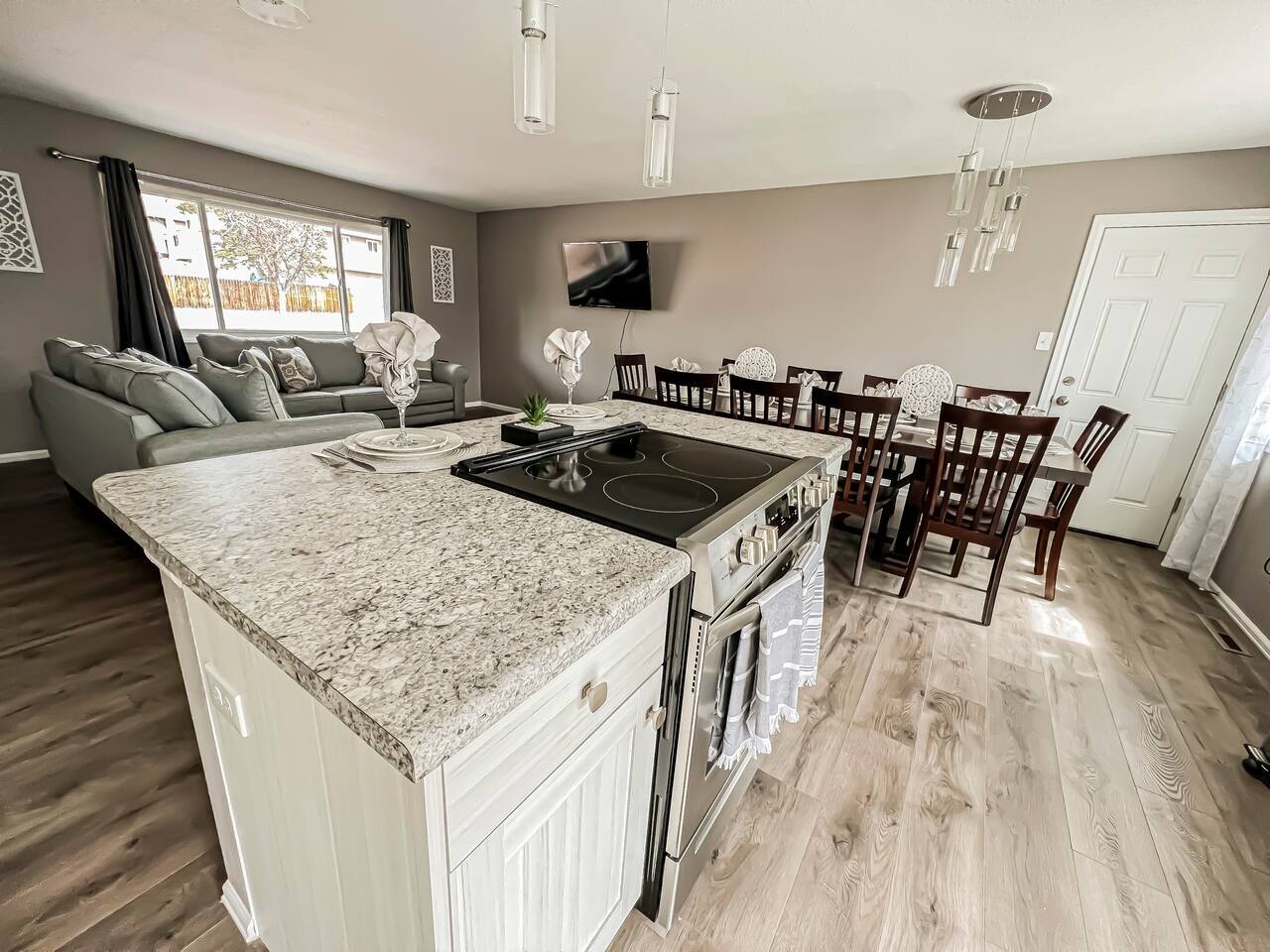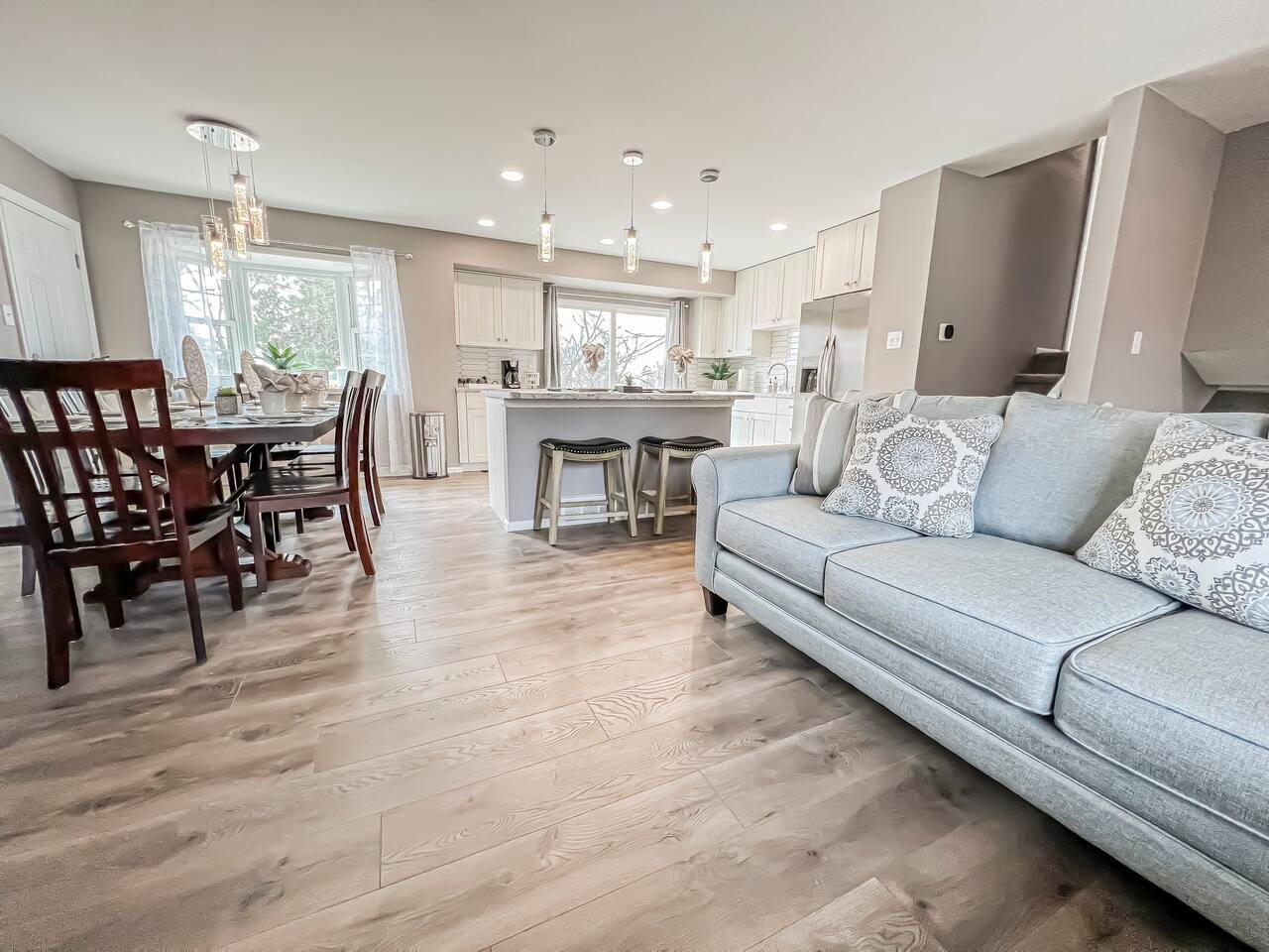 Newly Renovated home. Cozy for the whole family to come and relax. Stainless steal appliances. Plenty of counter space for cooking meals. TV's in every room King suite Bunk Room for the kids Large family rooms for TV watching and Games