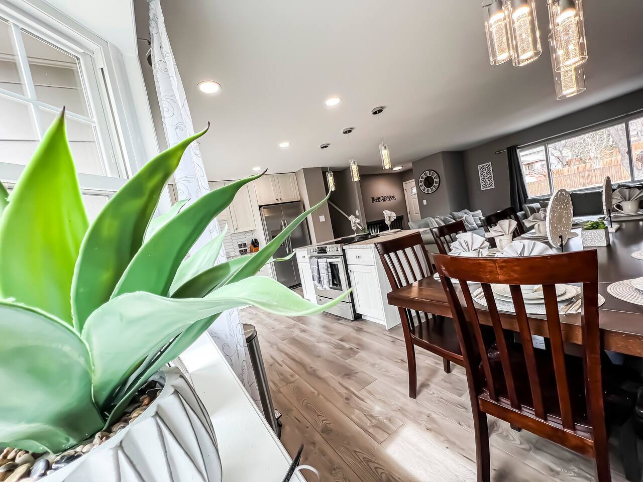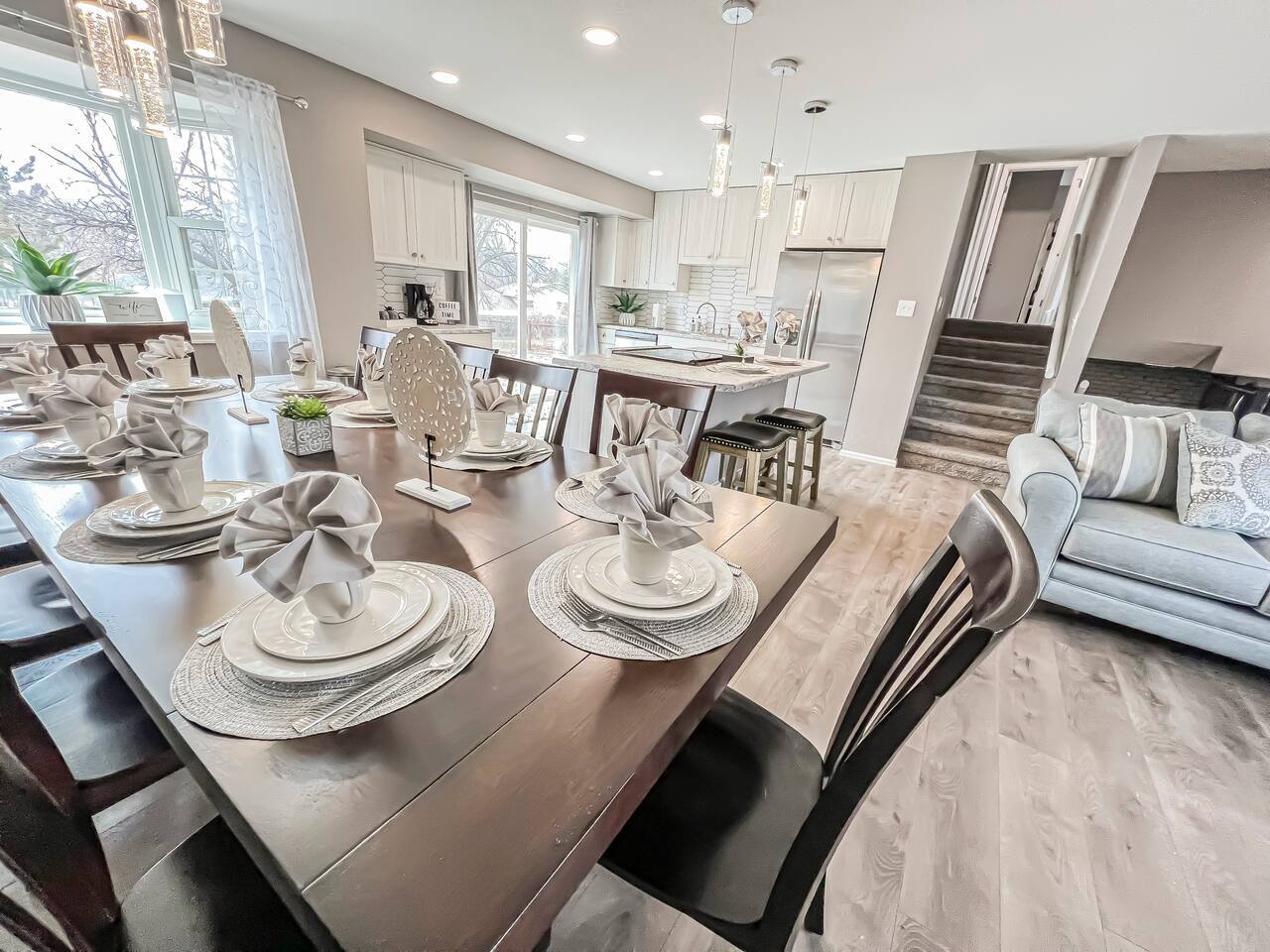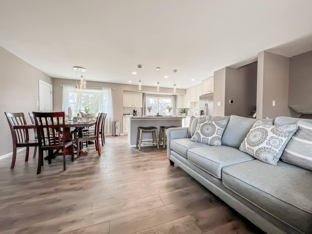 Newly Renovated home. Cozy for the whole family to come and relax. Stainless steal appliances. Plenty of counter space for cooking meals. TV's in every room King suite Bunk Room for the kids Large family rooms for TV watching and Games