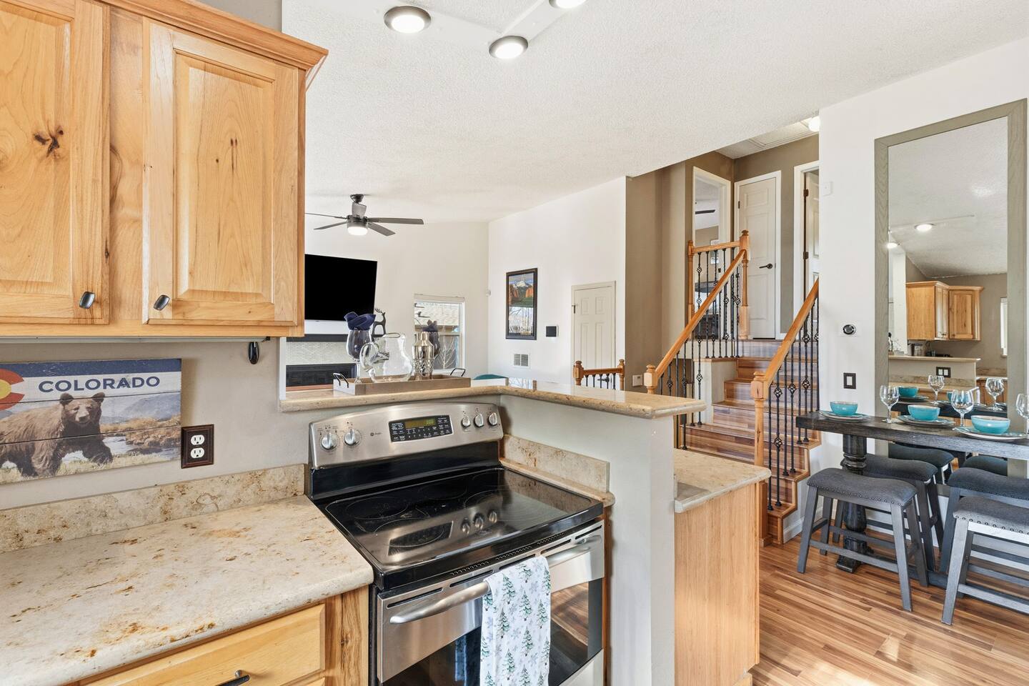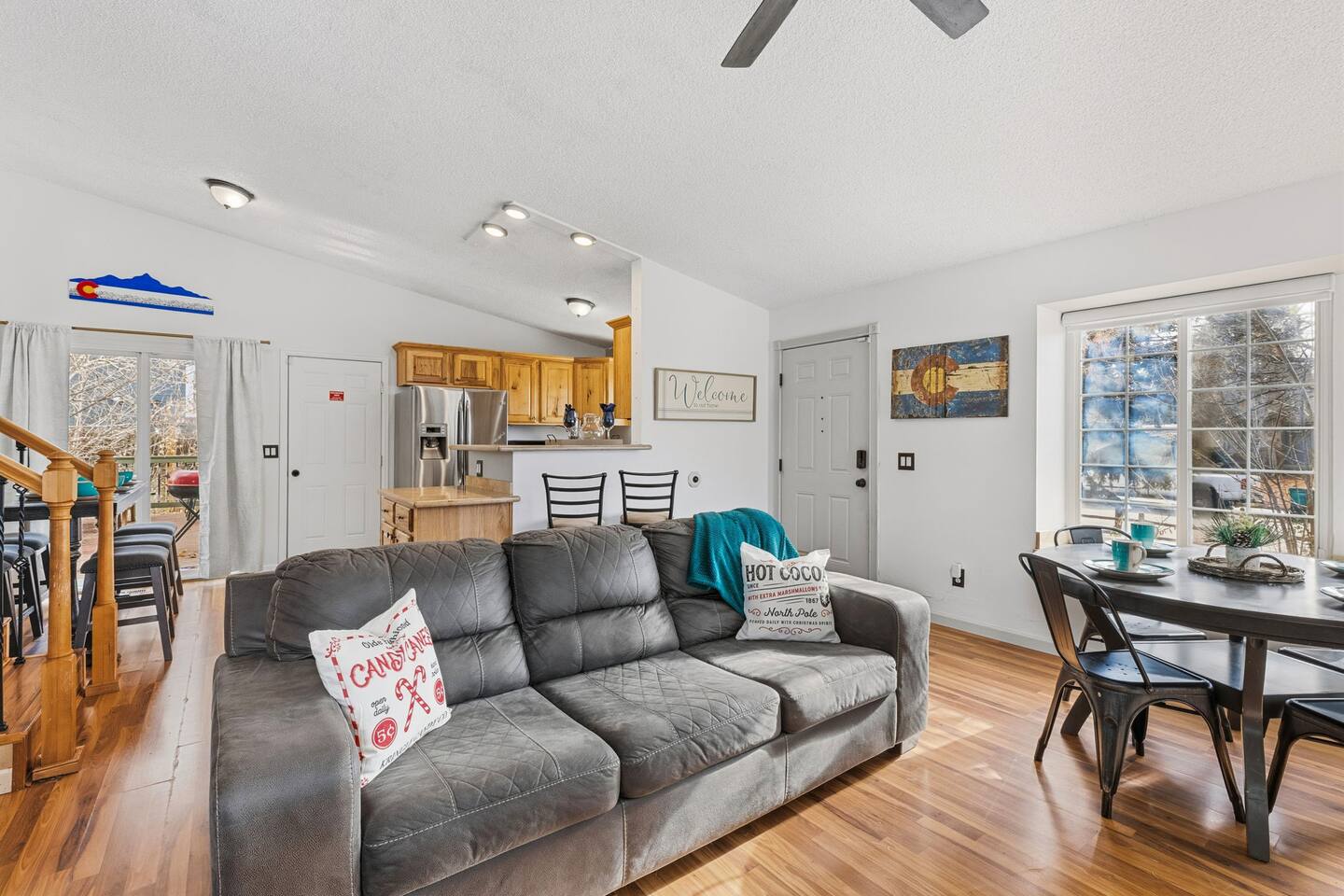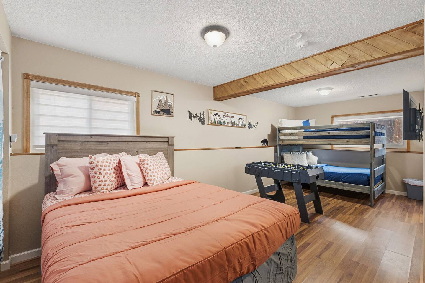 Welcome to our Pet Friendly (upon approval & Pet Fee Paid) 3Bdrm/2Bath home away from home! 2 mins to AF South Gate and Chapel Hills Mall. Our little house sits next to all that Colorado Springs has to offer and has the sweet charm that you would expect in Colorado. This is a Tri-Level House with 2 Bdrms Upstairs (King & King) & Full Bathroom and downstairs is a Full/Full Bunkbed and Queen Bed and a Full Bathroom. On the Main Level we have a Queen Sleeper Couch.