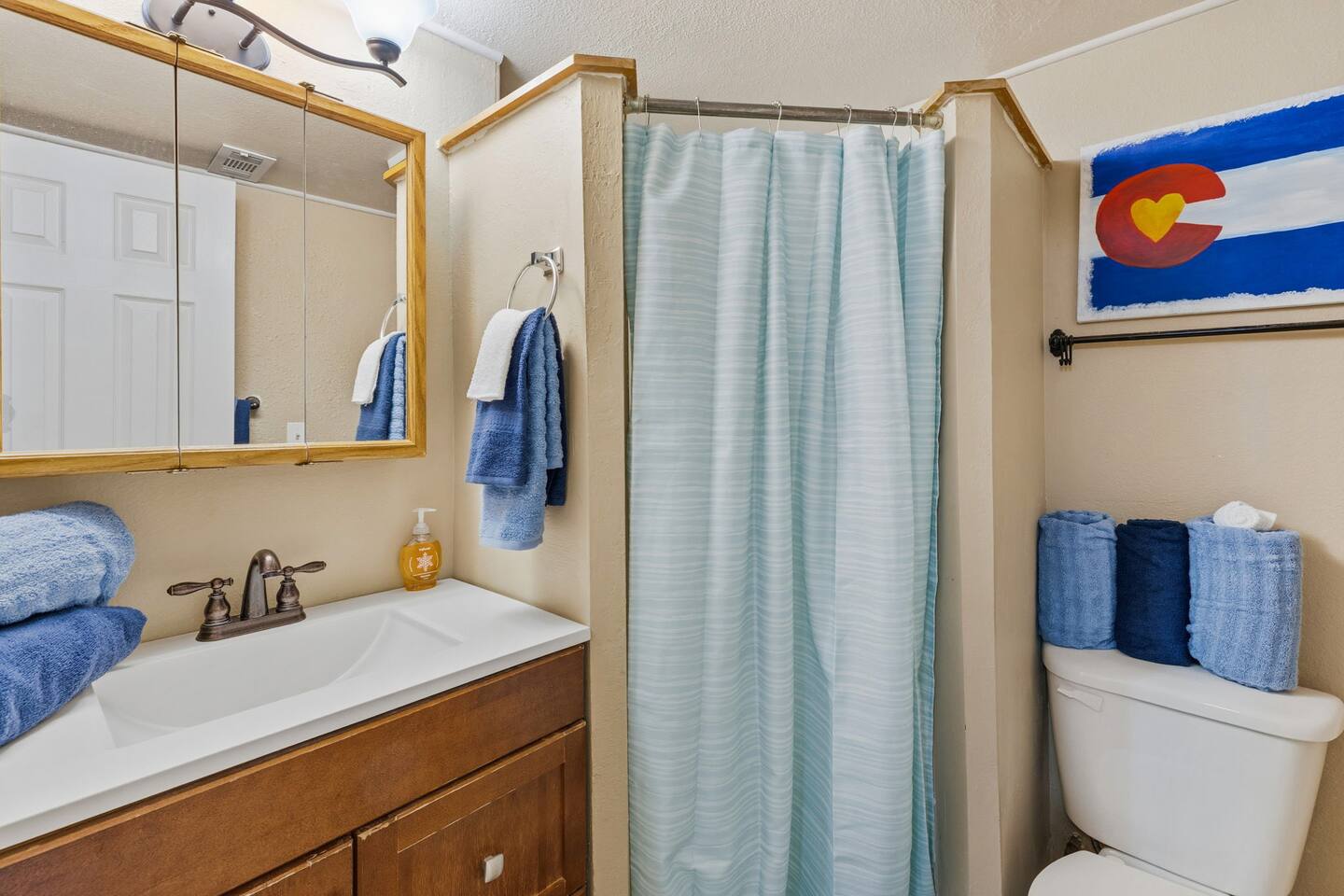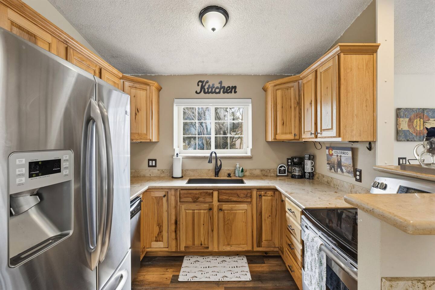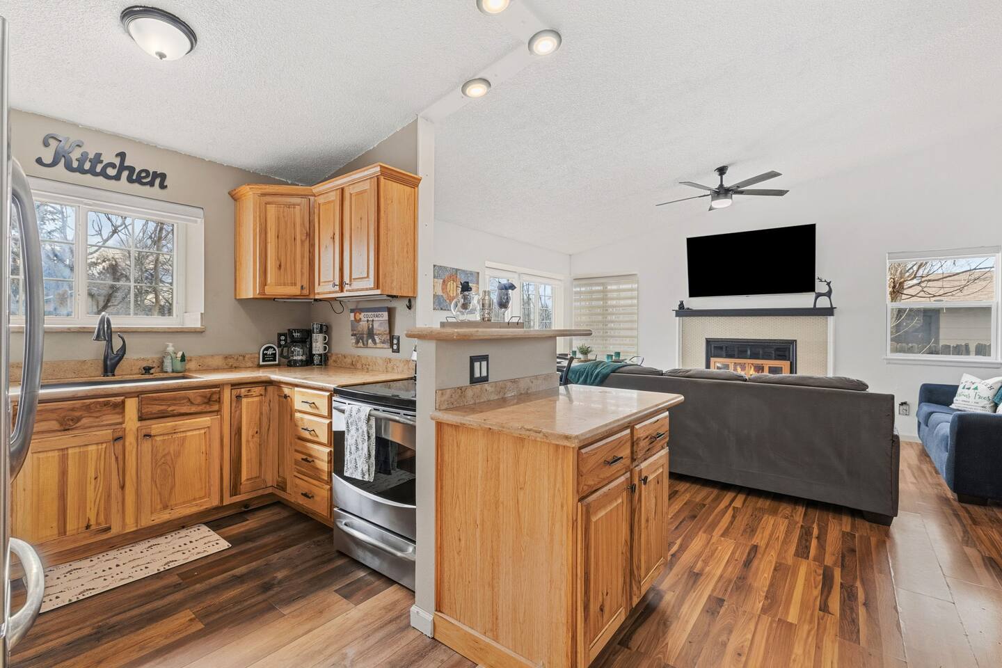 Welcome to our Pet Friendly (upon approval & Pet Fee Paid) 3Bdrm/2Bath home away from home! 2 mins to AF South Gate and Chapel Hills Mall. Our little house sits next to all that Colorado Springs has to offer and has the sweet charm that you would expect in Colorado. This is a Tri-Level House with 2 Bdrms Upstairs (King & King) & Full Bathroom and downstairs is a Full/Full Bunkbed and Queen Bed and a Full Bathroom. On the Main Level we have a Queen Sleeper Couch.
