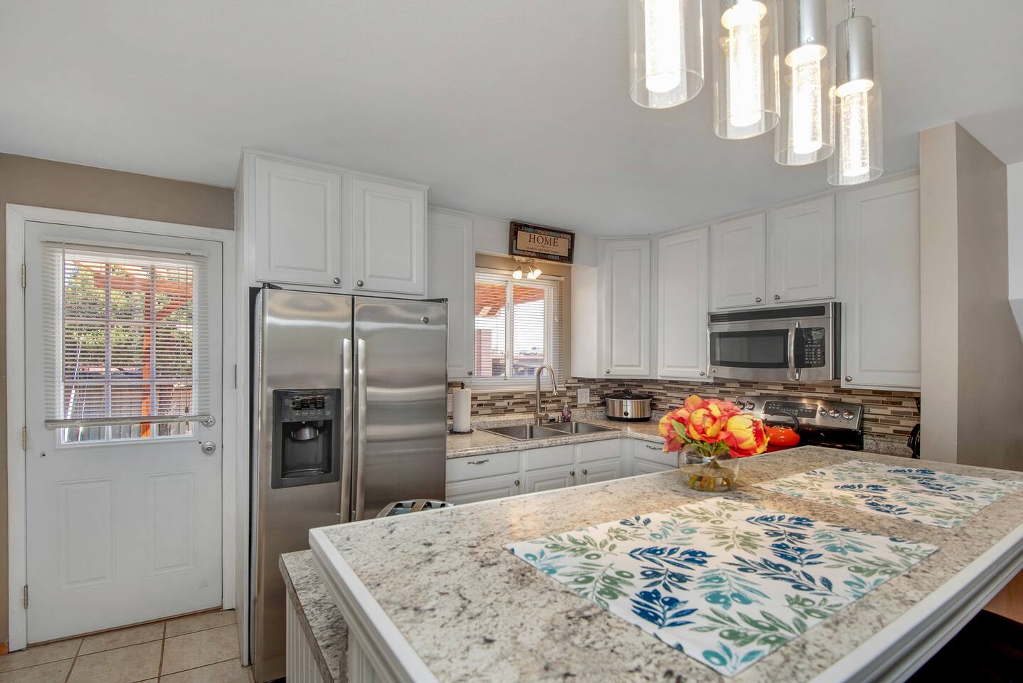 4 Bdrms- Upstairs 2 King Beds & 1 Queen Bed (Downstairs Bedroom has a King Bed & Queen Sleeper couch), Living Room has Queen Sleeper Couch. Perfect home for a 1 night stay for 1 person or a week+ long vacation for a family. With state of the art Appliances, Fenced Backyard, WiFi, 5 TVs, AC. Pet Friendly (up to 2 Dogs only) with prior approval and pet fee paid. NO Shoes. No Smoking or Vaping (cannabis, tobacco, or anything else) in the house, can smoke in back Colorado Springs STR Permit #0866