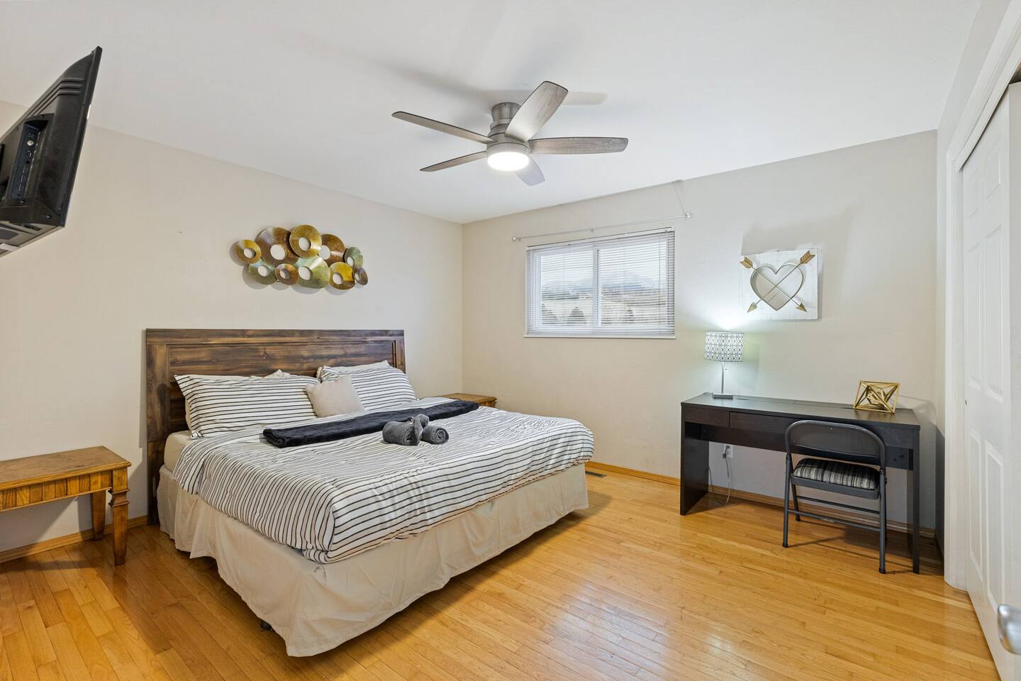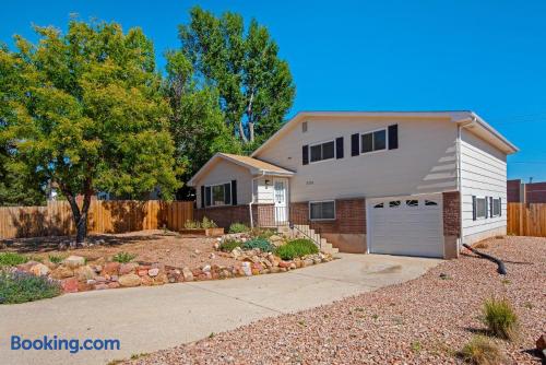 4 Bdrms/2Bath House near Garden of the Gods! Sleeps 12. Upstairs Large Bdrm - King Beds & Queen Bed. Bdrm #2 - King Bed, Bdrm #3 - King Bed. (Downstairs Large Bdrm - 2 King Beds. Perfect home for a 1 night stay for 1 person or a week+ long vacation for a family. With state of the art Appliances, Fenced Backyard, WiFi, 5 TVs, AC. Pet Friendly (up to 2 Dogs only) with prior approval and pet fee paid.