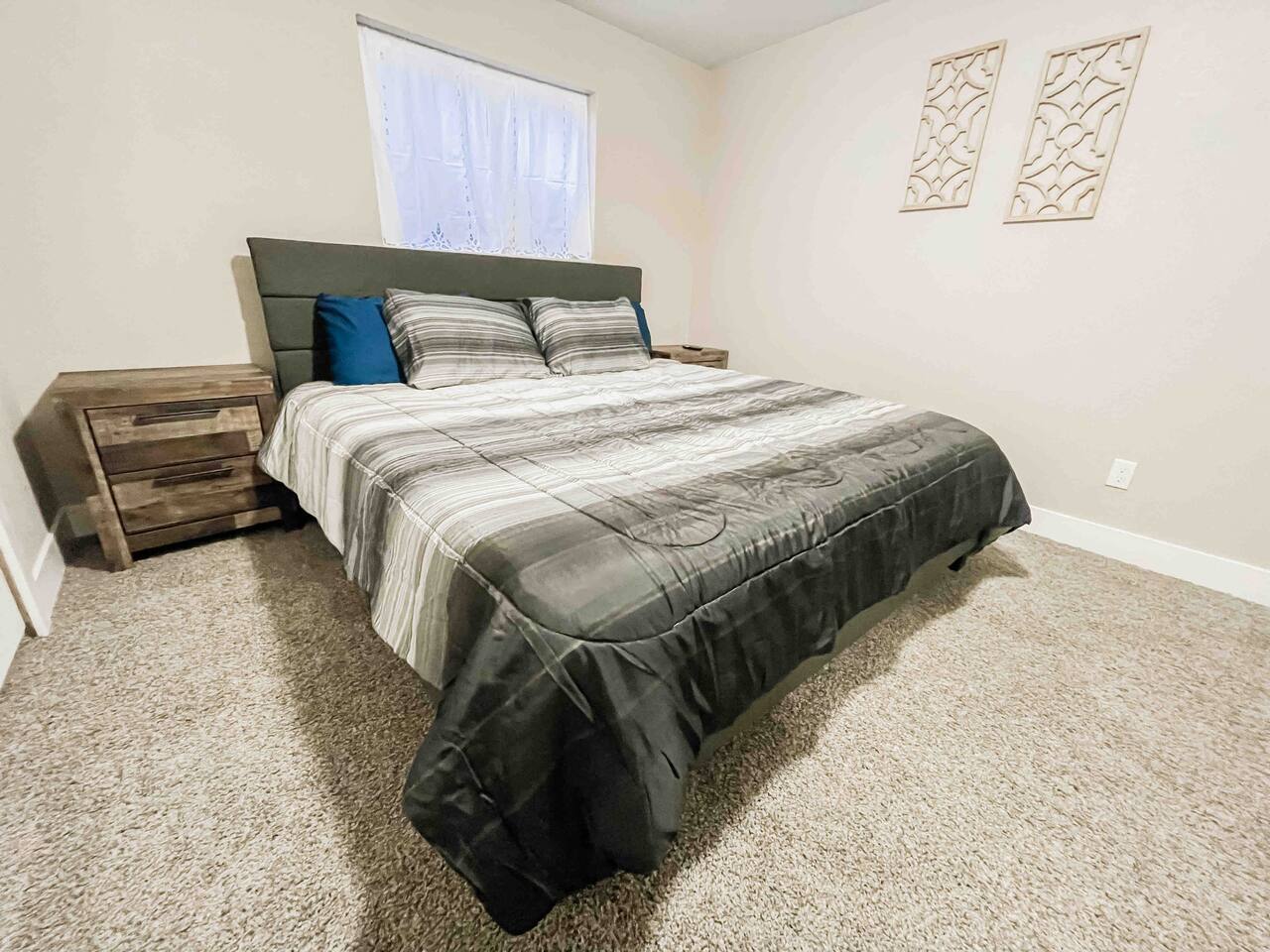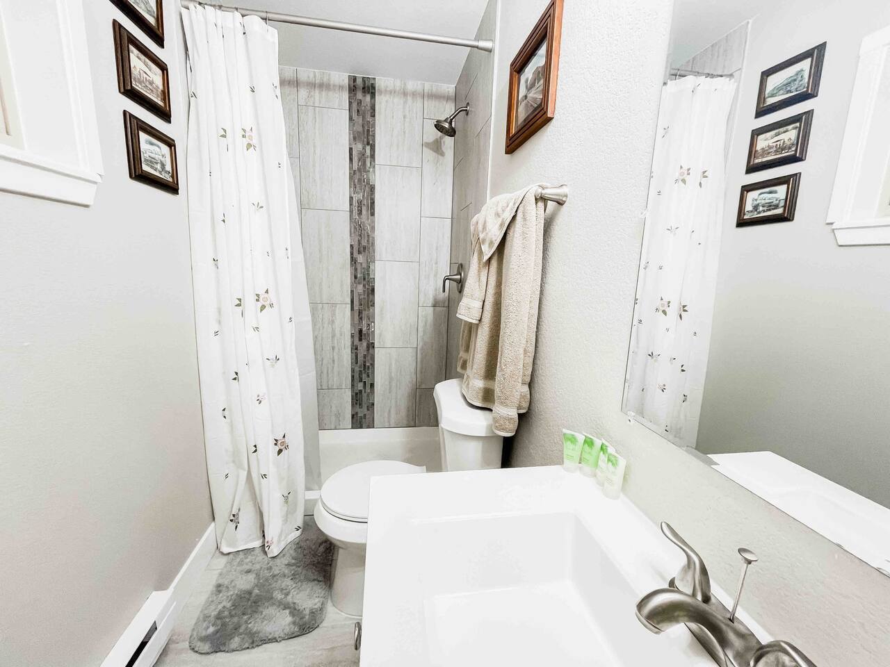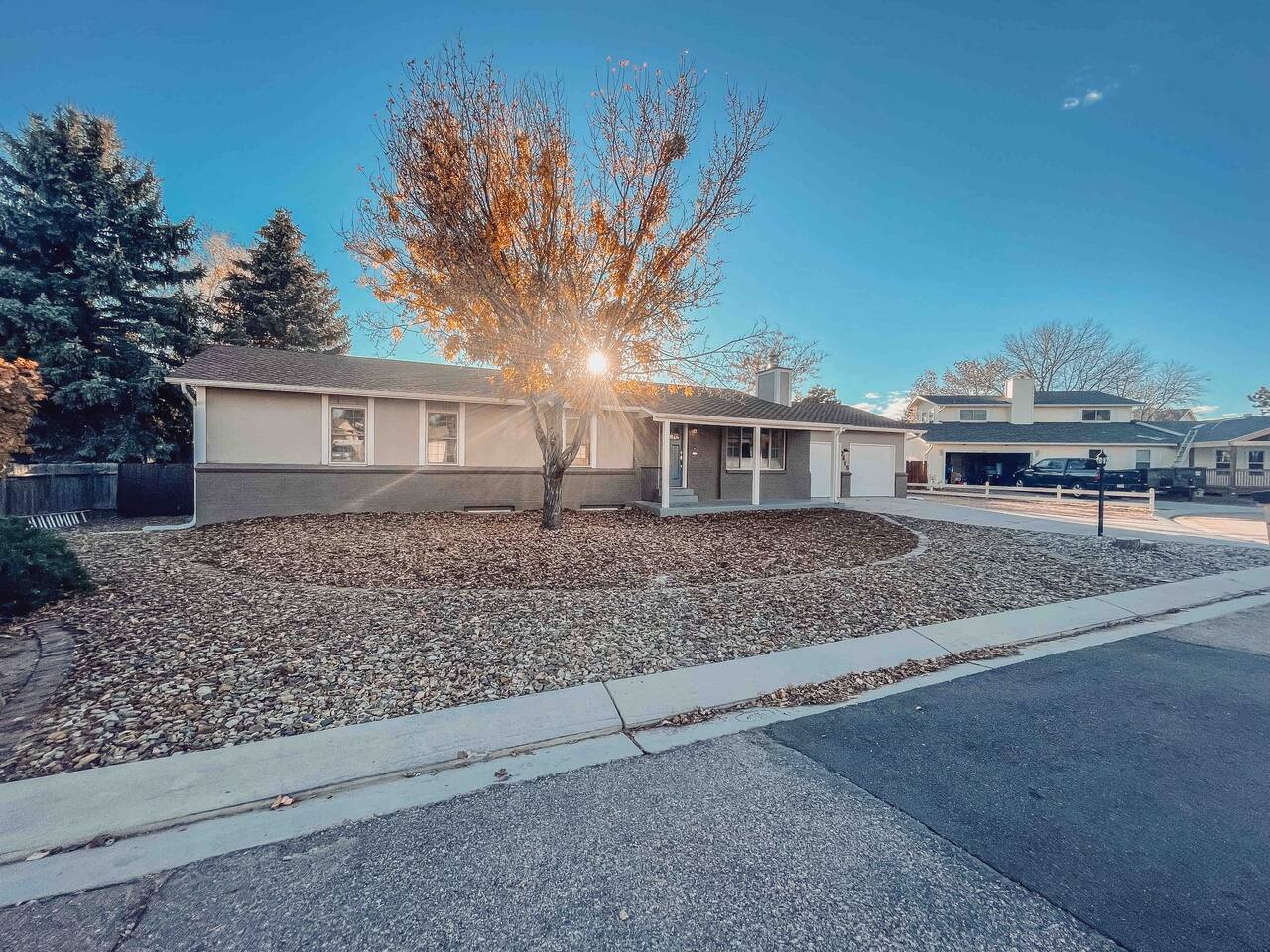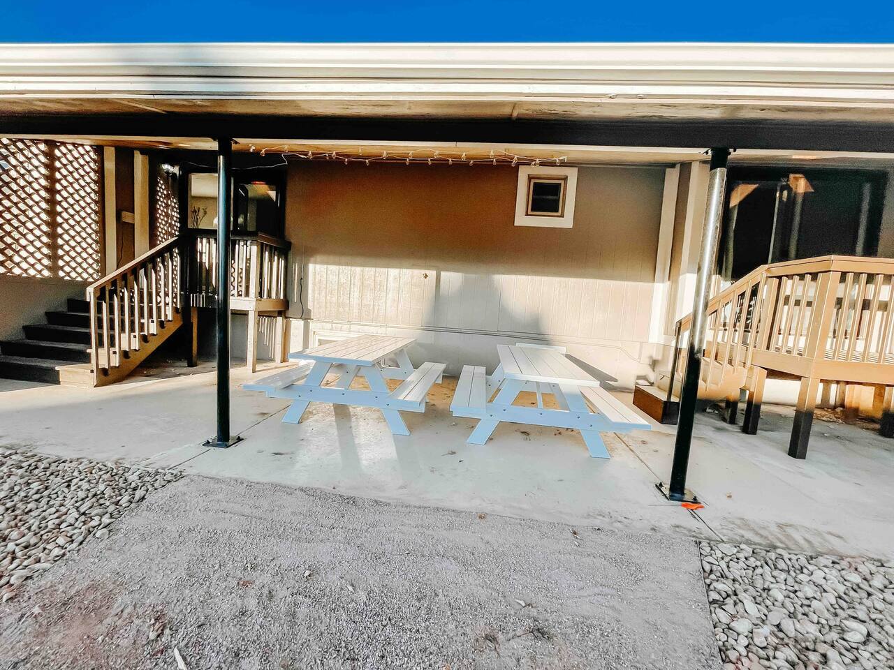 Welcome to home to this beautifully renovated 6 bedroom, 4 bath house located in North Colorado Springs. Walking through the front door you will be greeted by an open concept living, dining and kitchen. Relax on the large sectional sofa in front of one of two 70 in tvs or head straight out back to the spacious backyard; complete with a fire pit to enjoy on those chilly Colorado evenings. This home is perfect for large groups! Eat at one of two farmhouse style dining room tables, the eat in kitchen island, or one of the two outdoor picnic tables located under the backyard awning, complete with outdoor string lights to create the ambiance you're looking for on your vacation. Spread out in one of the two huge living rooms or game room! The kids can play downstairs with one of the many games provided, including shuffle board, ping pong, or a mix of various board games. Play a game of horse shoes outside while you take in the gorgeous Colorado sky. In case the two 70 in. TV's aren't enough, every bedroom has it's own tv! Several sleeping arrangements means everyone can rest comfortably. There are two master bedrooms with en suite bathrooms! A bunk room for the kids includes four full size beds! A second bunk room has a full over full bunk with a twin bed. There are two additional king size bedrooms complete with their own tvs. This home has it all for the group who wants entertainment, space, and a gorgeous farmhouse style interior to make lasting memories in.
