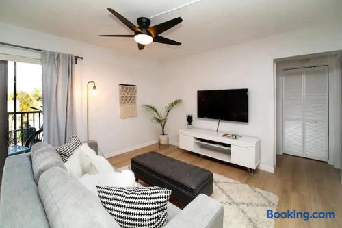 Relax in your ultra-private corner unit condo with amazing natural light & contemporary decor +private lanai. Enjoy the soft white sand & tropical vibes at Siesta Key Beach. This condo is located on the east side of Midnight Pass Rd, with the free open air trolley stop out front Entire condo, fully remodeled with wood flooring throughout 1 spacious master bedroom with walk in closet , vanity area with sink 1 full bath w/tub Living room, washer & dryer in unit Dock on the Bay for fishing Access to media room/clubhouse w/ WiFi / tennis courts BBQ area Access to community pool, and bathrooms Siesta Key Beach Access #12 .6 miles from condo (6490 Midnight Pass Road) *please note there is not direct private beach access: -beach wagon & gear -BIKES ($25 per bike entire stay) -Reserved parking -Washer & Dryer -Tennis courts/Dock